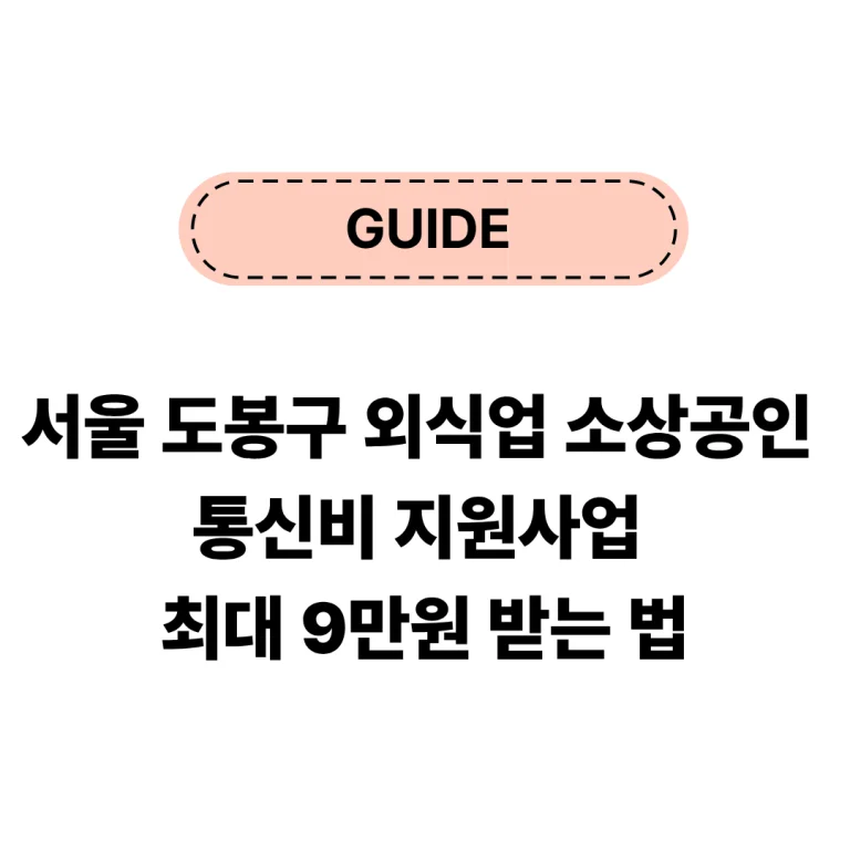 서울 도봉구 외식업 소상공인 통신비 지원사업이 2025년 11월에 시행됩니다. 경기침체로 어려움을 겪고 있는 외식업 사장님들을 위해 도봉구가 업체당 최대 9만원의...