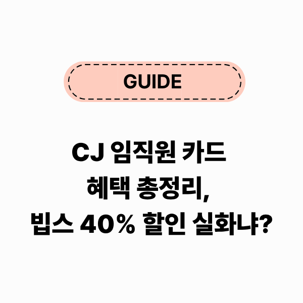 오늘은 CJ 그룹 입사 예정자에게는 설렘을, 기존 재직자에게는 놓치고 있던 꿀팁을 전해드리기 위해 CJ 임직원 카드의 혜택과 사용법을 완벽하게 정리해 드립니다.