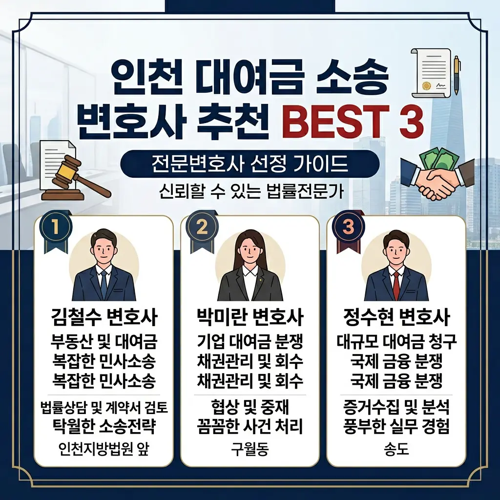 🏆 인천 청라 대여금 소송 변호사 BEST 3 (2026년 3월 기준)