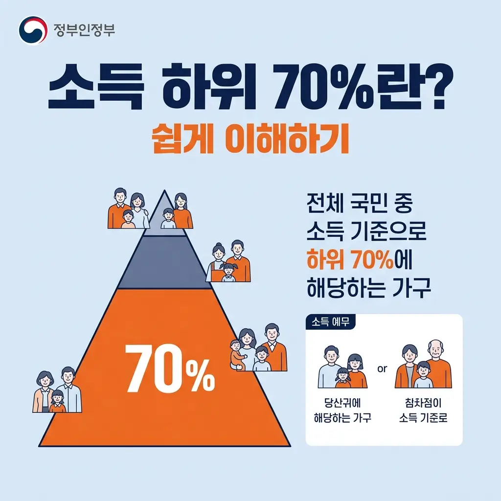 소득 하위 70% 기준이 적용되는 주요 복지 혜택