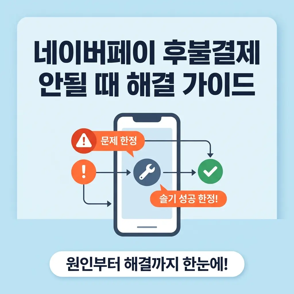 이 글을 읽으면 네이버페이 후불결제가 안되는 정확한 원인과 지금 당장 해결할 수 있는 방법을 5분 안에 확인할 수 있습니다. 갑자기 후불결제가 막혀 당황스러운 상황이라면, 원인부터 파악하는 것이 먼저입니다. 한도 초과부터 연체, 시스템 점검까지 원인별 해결 절차를 아래에서 정리했습니다.
