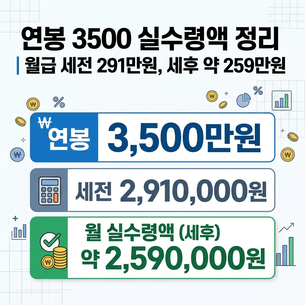 한 줄로 정리하면, 연봉 3500만원은 월 세전 약 291만원이고 실제 체감 월급은 대체로 260만원 안팎입니다.