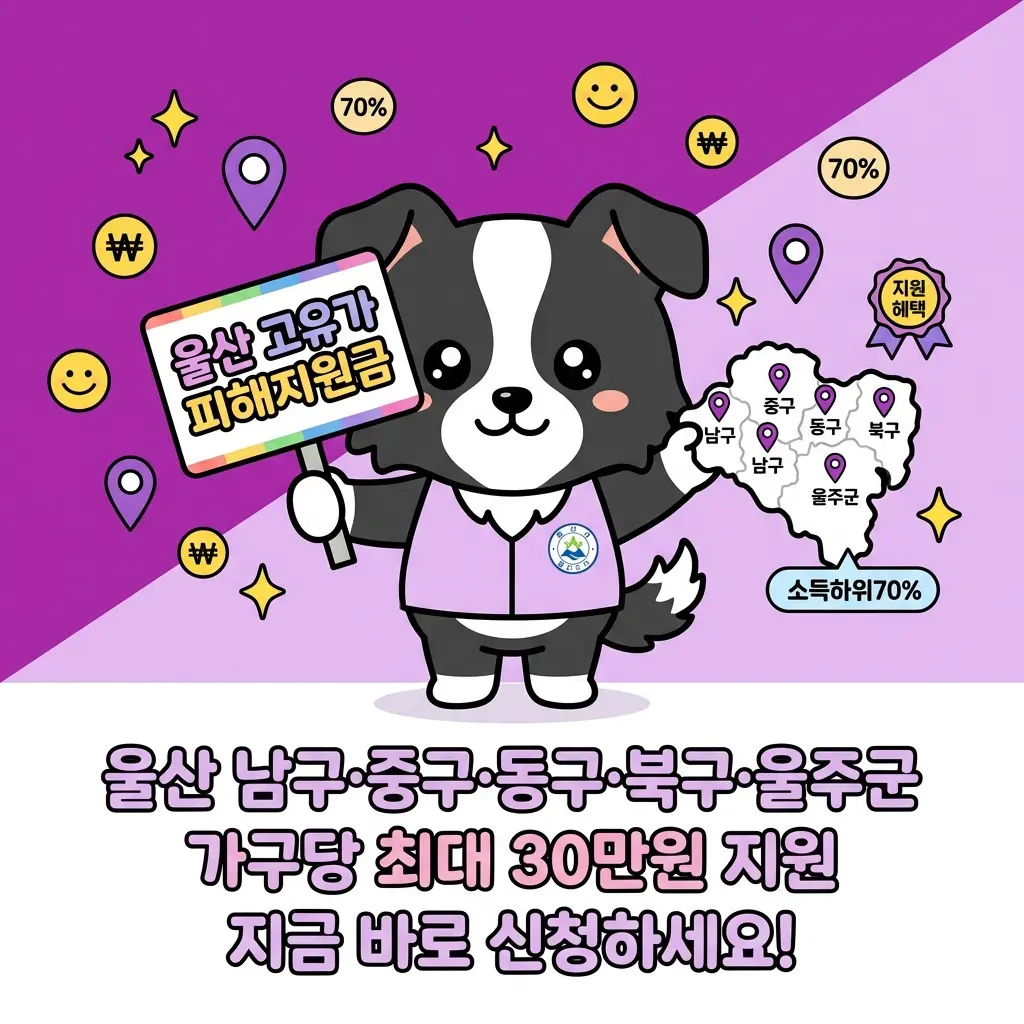 울산 고유가 피해지원금은 건강보험료 기준 소득 하위 70%에 해당하는 울산 거주자를 대상으로 1인당 최소 15만 원에서 최대 60만 원까지 지급됩니다. 남구·중구·동구·북구는 비수도권 일반 지역으로 15만 원이 기본 지급액이며, 울주군은 읍·면 지역에 따라 인구감소 우대지역 지정 여부 확인이 필요합니다. 기초생활수급자는 최대 60만 원, 차상위·한부모 가구는 최대 50만 원을 받을 수 있으며 지급 수단은 울산페이 등 지역화폐입니다. 울산 지역 내 다른 생활 지원 제도도 함께 살펴보면 중복 혜택 여부를 확인하는 데 도움이 됩니다.