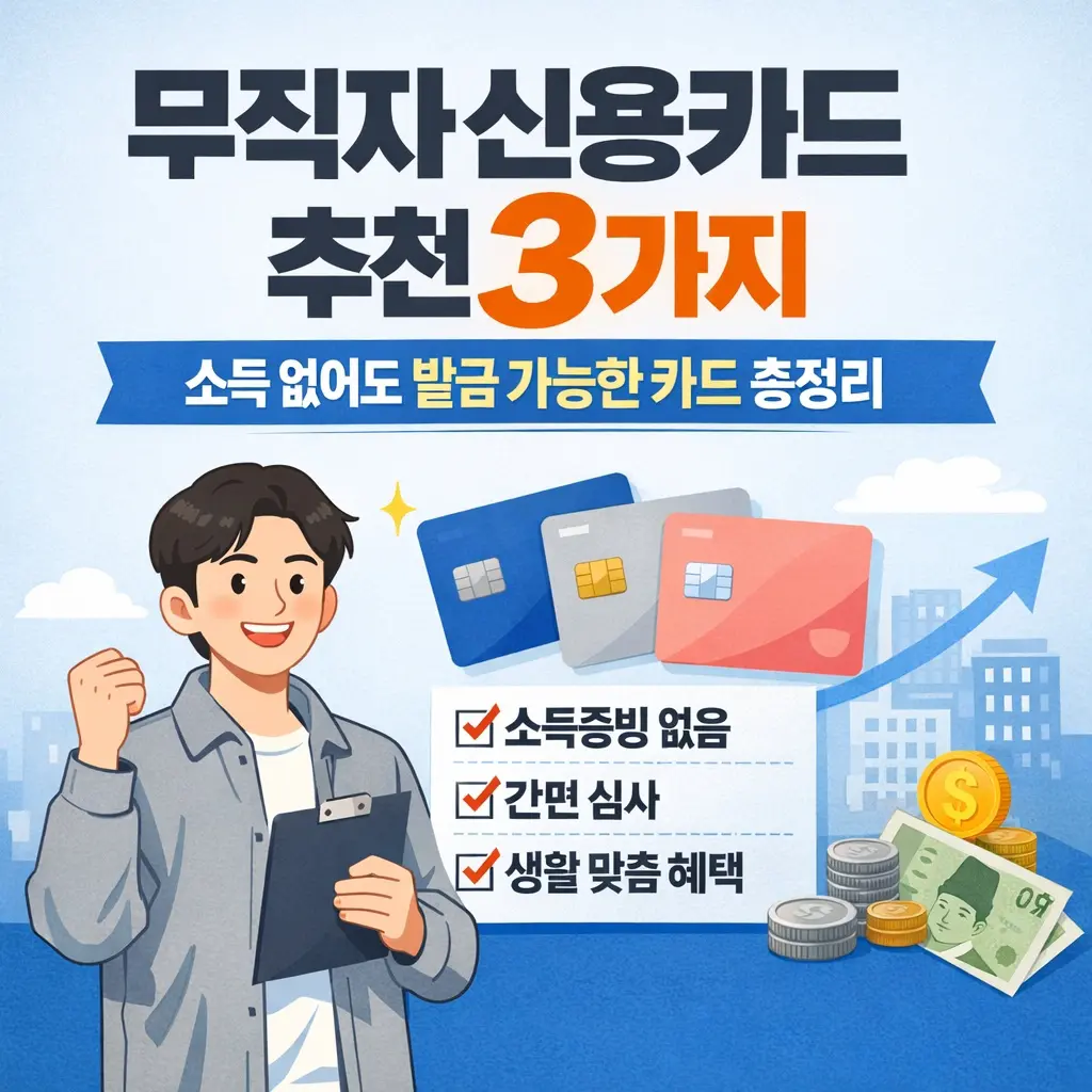 무직자라고 해서 신용카드를 절대 발급받을 수 없는 것은 아닙니다. 금융위원회 기준에 따르면 정기적인 소득이 없더라도 일정 수준의 신용점수와 금융 거래 이력이 있다면 신용카드 발급이 가능합니다. 핵심은 소득 대신 신용점수, 체크카드 사용 이력, 예금 평균잔액(평잔) 등을 활용해 상환 능력을 입증하는 것입니다. 이 글에서는 실제 무직자 발급 성공 사례가 많은 신용카드 3가지를 엄선하여 발급 조건, 혜택, 주의사항까지 꼼꼼하게 안내합니다.
